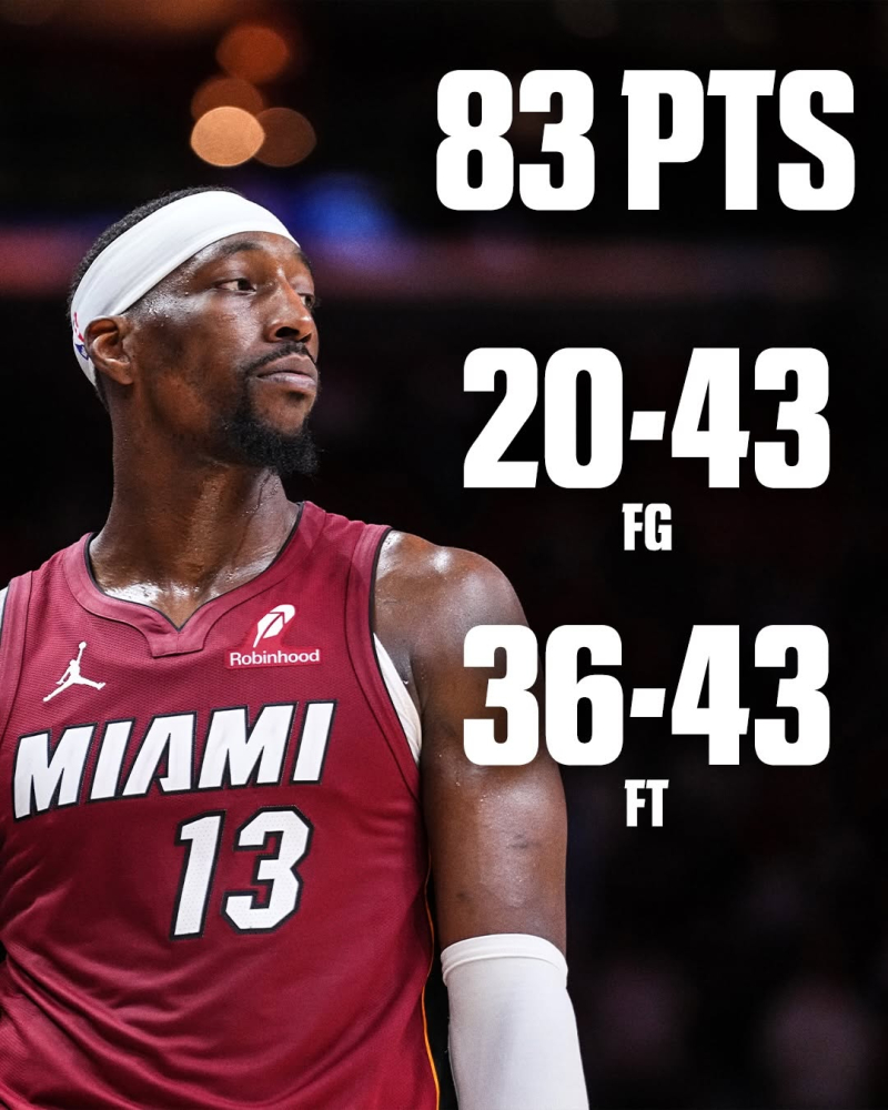 2020년대 브라이언트의 기록에 가장 근접했던 건 루카 돈치치치(73점) 데미안 릴라드, 도노반 미첼(이상 71점) 조엘 엠비드(70점) 등이었다. 2025년에는 단 한 명의 선수도 70점 고지를 밟지 못했다. 그런데 이 벽을 아데바요가 넘어섰다. 그는 이날 3점슛 7개 포함 야투 20개를 넣었고, 자유투로만 36점(43개 시도)을 추가해 대기록을 완성했다.
