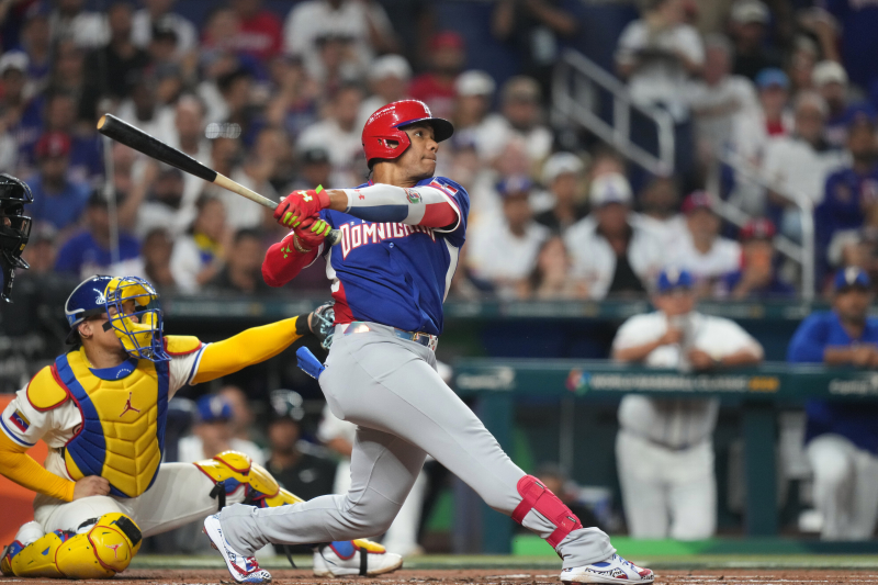 초호화 멤버를 자랑하는 도미니카공화국은 무서운 화력을 앞세워 베네수엘라를 꺾었다. 소토가 12일(한국시간) 베네수엘라전 1회 투런 포를 터트리고 있다. AP=연합뉴스 MLB 최고 몸값을 자랑하는 후안 소토(뉴욕 메츠)가 1회 초 선제 투런포를 터뜨리며 승리에 앞장섰다. 소토는 1사 1루에서 빅리그 통산 94승 좌완 에두아르도 로드리게스(애리조나 다이아몬드백스)의 시속 151.4㎞ 포심 패스트볼을 잡아당겨 타구를 담장너머로 날려보냈다. 비거리는 124.7m.
