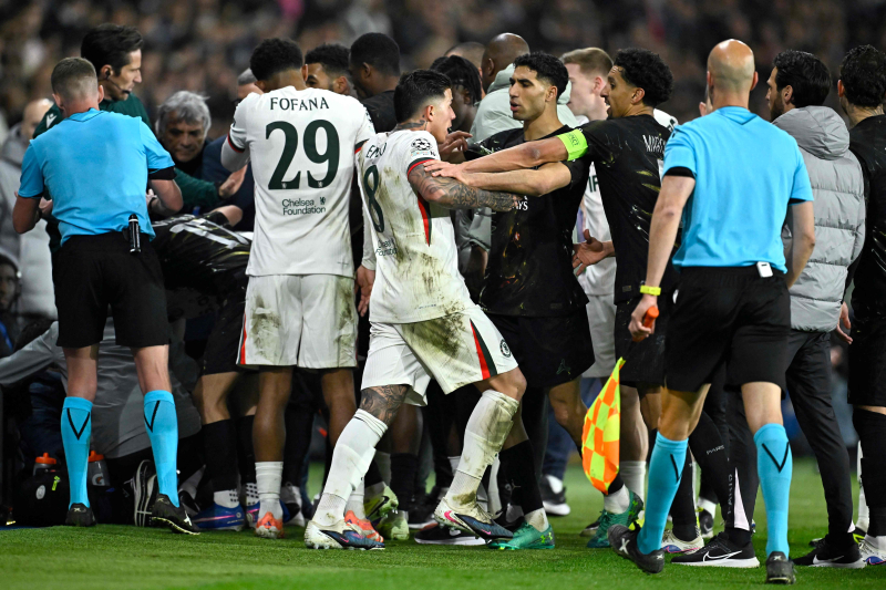 첼시 네투가 볼보이를 밀친 뒤 PSG와 첼시 선수단이 충돌했다. 사진=AFP 연합뉴스