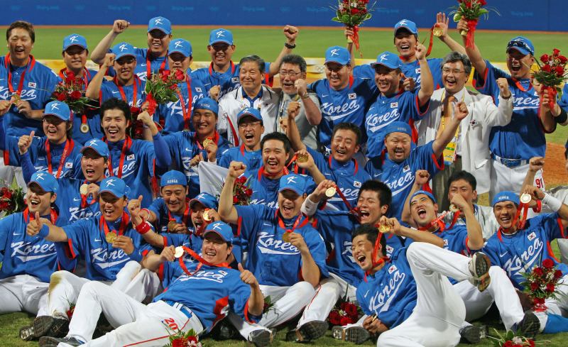 지난 호주를 7-2로 물리치고 '최소 실점률' 규정 덕에 기적 같은 8강 진출에 성공한 대표팀은 전 세계의 이목이 집중된 도미니카공화국에서 콜드 게임 패배 수모를 당했다. 2008 베이징 올림픽에서 금메달을 딴 우리 선수들이 기뻐하고 있다. <저작권자 ⓒ 1980~2026 ㈜연합뉴스. 무단 전재 재배포 금지.> 한국은 2000년 시드니 올림픽 동메달을 시작으로 2006 WBC 4강, 2008 베이징 올림픽 금메달, 2009 WBC 준우승을 거두는 등 황금기를 구가했다. 큰 무대에서 '숙적' 일본을 연달아 격파하며, 아시아 최강의 자리를 넘보기까지 했다.