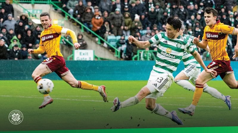 15일 머더웰과의 2025~26 스코티시 프리미어십 30라운드서 셀틱 양현준이 왼발 슈팅으로 득점을 터뜨리고 있다. 사진=셀틱 SNS