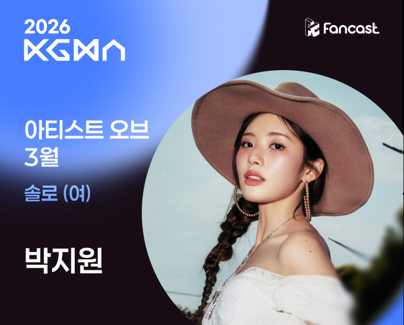 지난 10일부터 15일까지 팬캐스트를 통해 진행된 ‘2026 KGMA 아티스트 오브 3월’ 솔로 여자 부문 투표에서 박지원은 총 4986표를 획득하며 1위를 차지했다.