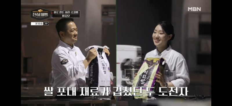 ‘임실 치즈’가 재료인 김진서는 미션을 준비하며 임실 치즈를 열심히 먹은 탓에 무려 5kg이 증량됐다고 해 웃음을 안겼다. 김진서는 10분간 구운 반죽에 치즈를 넣고, 그 위에 얇게 만든 치즈로 한 번 더 감싼 ‘부라타 브레드’로 발상의 전환을 드러내 김나래, 이석원을 깜짝 놀라게 했다. 사진=MBN 제공 ‘새우과자 대결’에서 승부를 겨뤘던 김시엽과 황지오는 이번에도 ‘쌀’이라는 똑같은 주제로 맞붙게 돼 관심을 집중시켰다. ‘이천 쌀’을 맡은 황지오는 쌀을 이용해 만든 도자기가 연상되는 달항아리 모양 빵에 생막걸리로 만든 몽테 크림, 산수유 잼을 넣은 ‘이천 만남(맛남) 2종’을 만들었다.