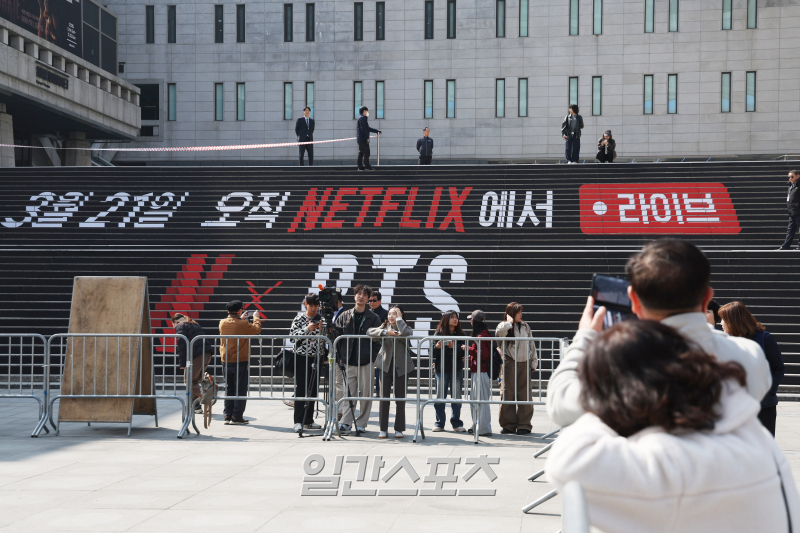 [포토] BTS 공연 광화문광장 찾은 시민들