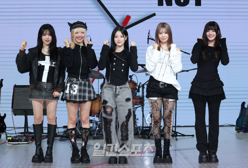 밴드 레이턴시(LATENCY) 희연, 지원, 현진, 하은, 세미가 18일 오후 서울 마포구 쇼킹케이팝센터에서 열린 첫 미니앨범 ‘레이트 어클락’ 발매 기념 쇼케이스에 참석해 포토타임을 갖고 있다.