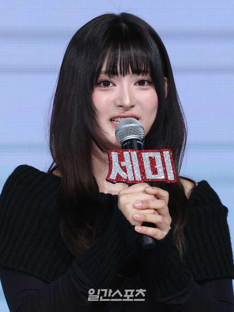 밴드 레이턴시(LATENCY) 세미가 18일 오후 서울 마포구 쇼킹케이팝센터에서 열린 첫 미니앨범 ‘레이트 어클락’ 발매 기념 쇼케이스에 참석해 인사말을 하고 있다.