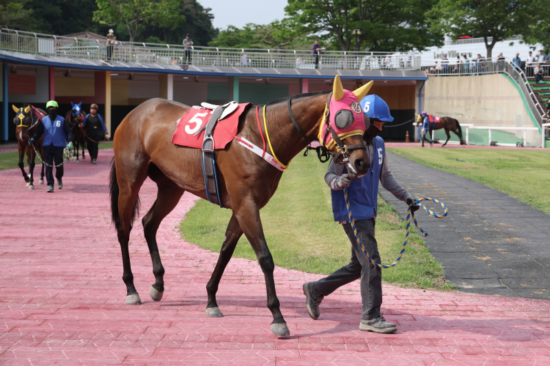 2025년 경기도지사배에 나선 오늘도스마일. 사진=한국마사회 ▶오늘도스마일(9전 6/2/1, 레이팅 88, 한국, 암, 4세, 부마: 페더럴리스트, 모마: 히트스윕, 마주: (주)나스카, 조교사: 문병기, 기수: 마이아) 오늘도스마일은 선행 전개를 주로 펼친다. 초반 주도권을 잡기 위한 작전에 나설 전망이다. 그동안 단거리 중심으로 활약해온 만큼 1800m 거리에서는 체력 안배가 최대 관건으로 꼽힌다. 연승률(3위 이내) 100%을 기록하며 상승세를 이어가고 있다. 이번 경주에서 첫 대상경주 우승 트로피를 들어 올릴 수 있을지가 관심사다.