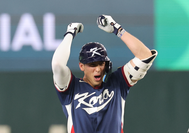 일본 도쿄돔에서 열린 2026 월드베이스볼클래식(WBC) C조 조별리그 최종전 대한민국과 호주의 경기. 8회초 무사 한국 셰이 위트컴이 2루타를 친 뒤 포효하고 있다. 연합뉴스