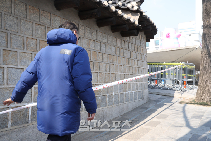 [포토] 덕수궁 돌담길 훼손 방지를 위한 통제선
