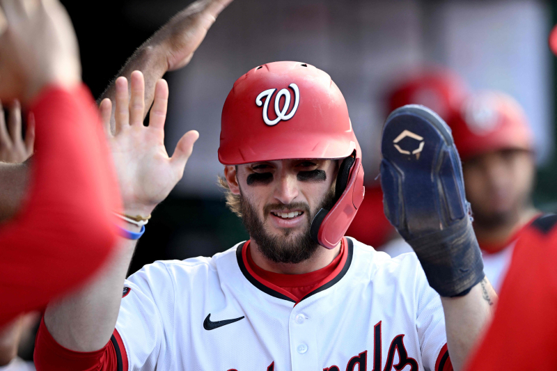 WASHINGTON, DC - MAY 06: Dylan Crews #3 of the Washington Nationals celebrates with teammates after scoring in the seventh inning against the Cleveland Guardians during game one of a double header at Nationals Park on May 06, 2025 in Washington, DC. Greg Fiume/Getty Images/AFP (Photo by Greg Fiume / GETTY IMAGES NORTH AMERICA / Getty Images via AFP)/2025-05-07 07:53:54/ <저작권자 ⓒ 1980~2025 ㈜연합뉴스. 무단 전재 재배포 금지, AI 학습 및 활용 금지>