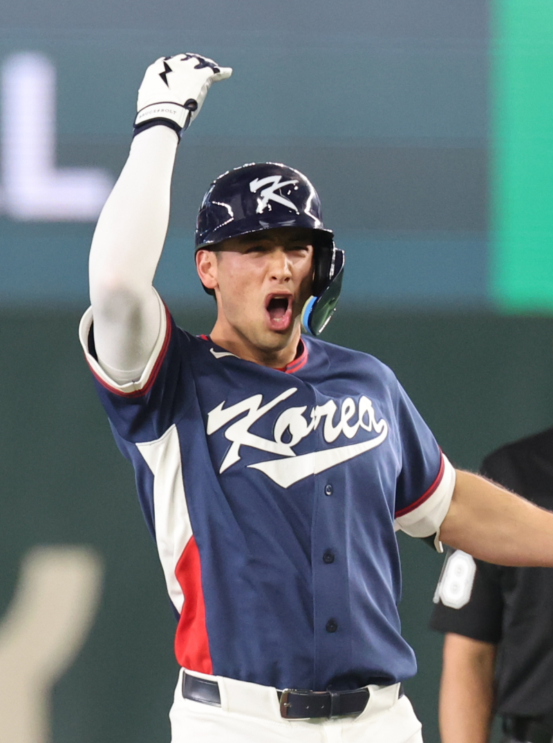 9일 일본 도쿄돔에서 열린 2026 월드베이스볼클래식(WBC) C조 조별리그 최종전 대한민국과 호주의 경기. 8회초 무사 한국 셰이 위트컴이 2루타를 친 뒤 포효하고 있다. 2026.3.9 [연합뉴스]
