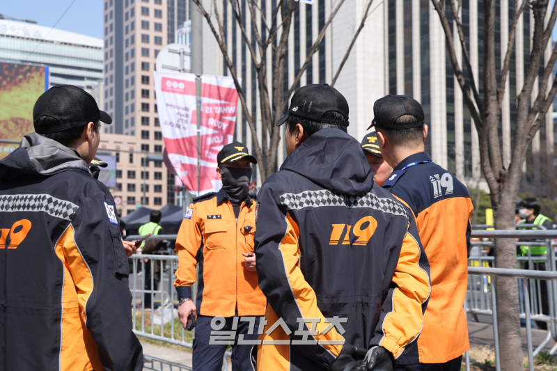 [포토] 광화문 일대에 배치된 소방 인력