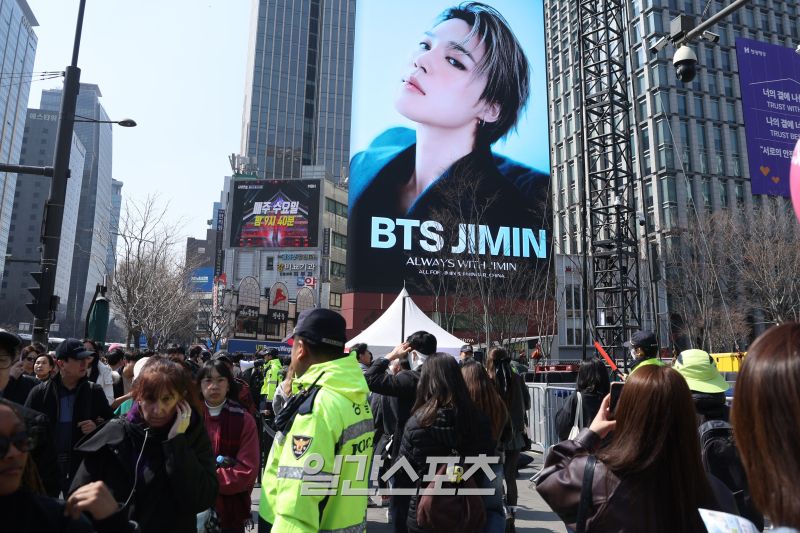 "기념품 사러 일찍"…`두근두근` 보랏빛 팬심, 북적이는 광화문