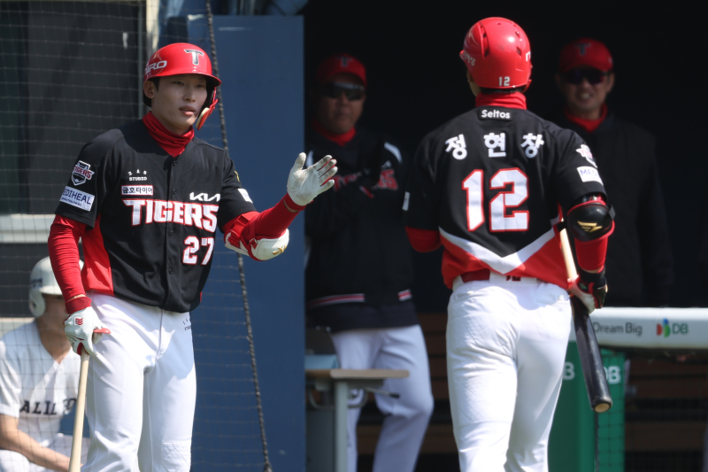 KIA 타이거즈는 21일 서울 잠실구장에서 열린 두산 베어스와의 시범경기를 11-6 대승으로 장식했다. 장단 14안타를 쏟아내며 두산 마운드를 무너트렸는데 1루수 윤도현(3타수 2안타 2홈런 2타점) 3루수 박민(4타수 1안타 2타점) 2루수 정현창(4타수 2안타 1홈런 3타점)이 무려 5안타 3홈런 7타점을 합작했다. 주축 선수인 김도영과 나성범 등이 선발 라인업에서 제외됐음에도 불구하고 타선의 짜임새가 상당했다.