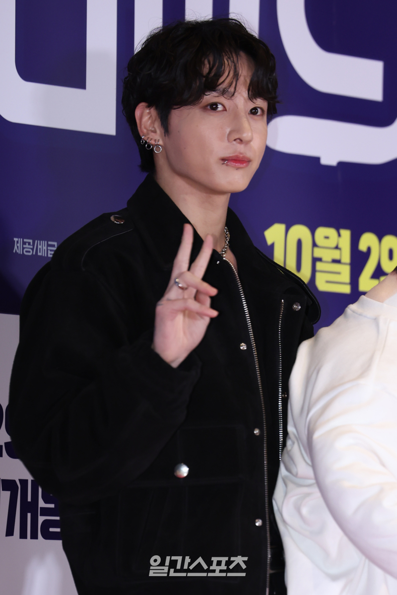 BTS(방탄소년단) 정국이 27일 오후 서울 송파구 롯데시네마 월드타워점에서 열린 영화 '퍼스트 라이드' VIP시사회 포토월 행사에 참석해 포토타임을 갖고 있다. 서병수 기자 /2025.10.27/