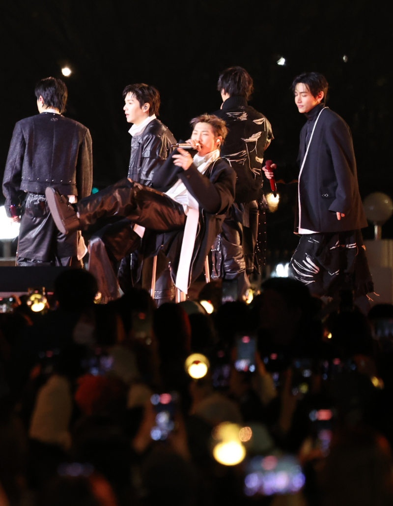 지민은 전세계에서 온 아미(방탄소년단 팬덤명)를 향해 “너무 춥지 않느냐. 날씨가 풀린 것 같아서 안심하고 왔는데 생각보다 춥다”며 “여러분이 행복한 모습을 눈에 담고 있어서 저희 또한 행복하게 공연하고 있다”고 웃었다.