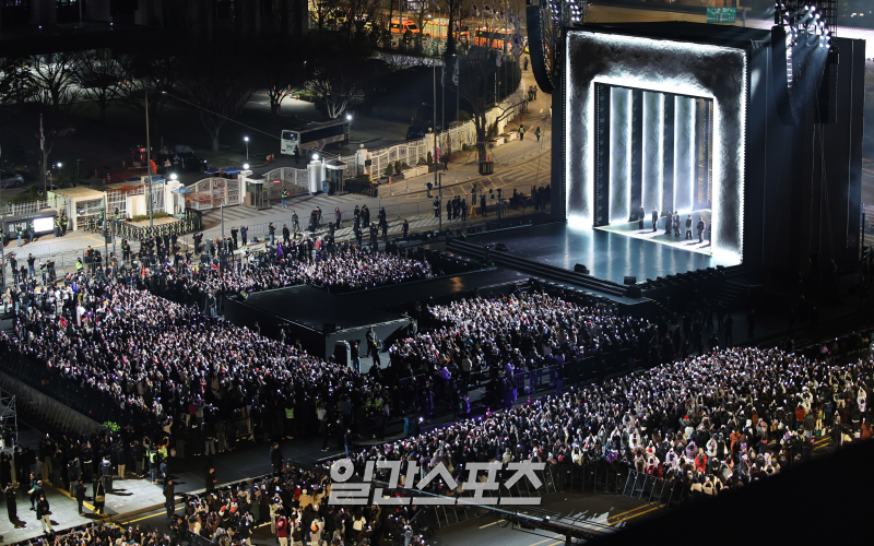완전체 귀환 방탄소년단, ‘아리랑’ 들고 10만 4천 아미 앞 컴백 신고