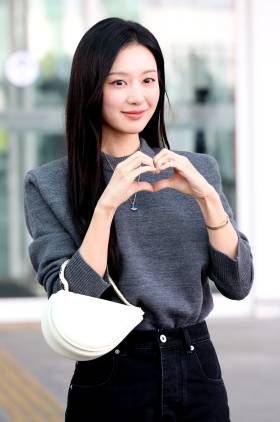 배우 김지원, 허리 숙여 출국인사