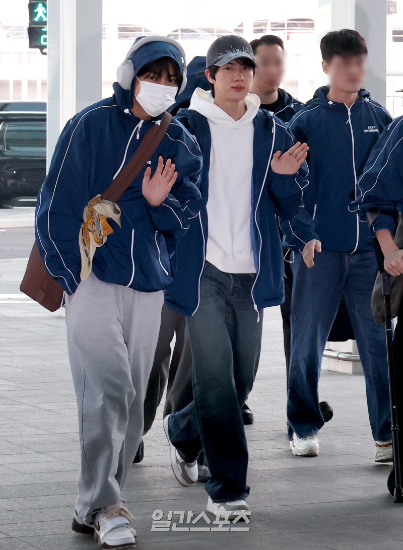 [포토]BTS 뷔-진, 다정하게 손인사