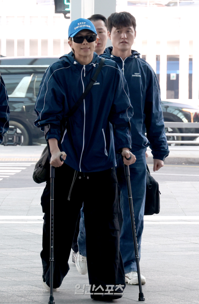 [포토]방년소년단 RM, 목발 짚고 미국행