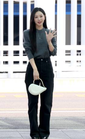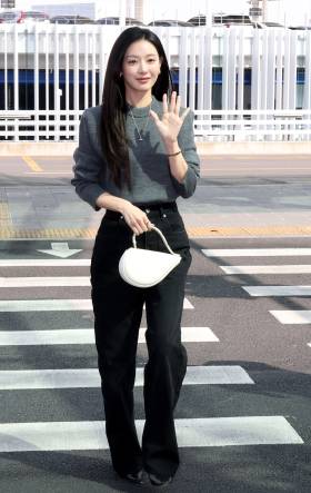 배우 김지원, 포근한 봄날씨 속 가벼운 출국길