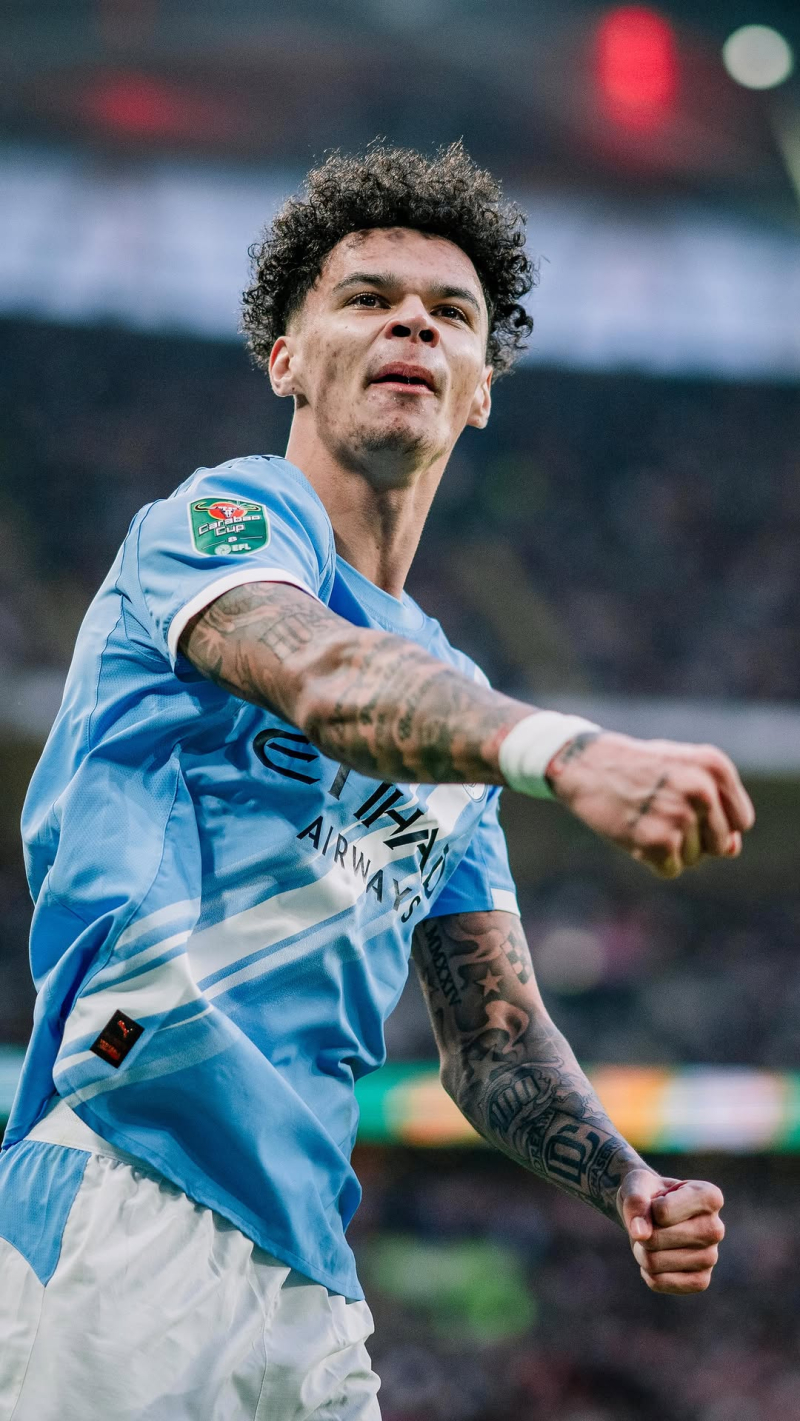 맨시티 오라일리가 23일 웸블리에서 열린 2025~26 잉글랜드 풋볼리그(EFL) 컵(카라바오컵) 결승전 아스널과 경기서 득점 후 환호하고 있다. 사진=맨시티 SNS