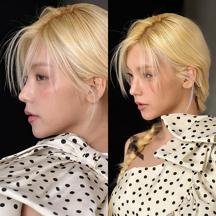 공개된 사진 속 예지는 금발 헤어를 자연스럽게 늘어뜨린 채 도트 패턴 의상을 입고 고개를 살짝 돌린 모습이다. 특히 또렷한 콧대와 날렵한 턱선이 돋보이는 완벽한 측면 비주얼이 시선을 사로잡는다.