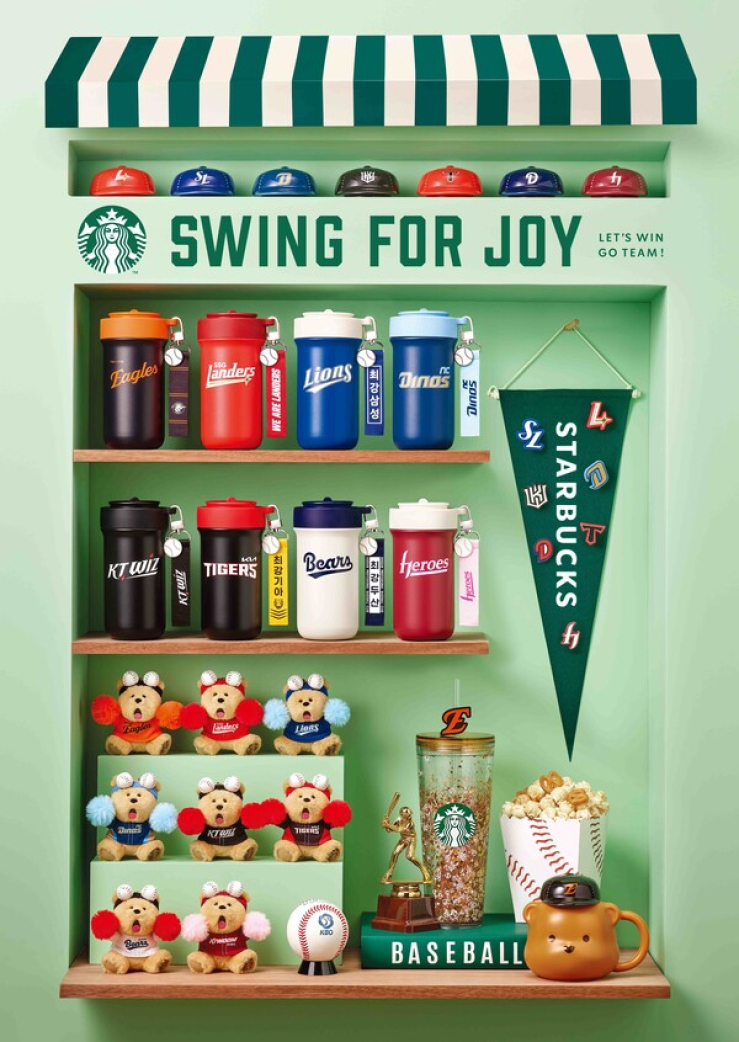 24일 유통업계에 따르면 한국야구위원회(KBO)는 2026시즌 프로야구 개막을 맞아 스타벅스 코리아와 협업을 진행한다. 'Swing for Joy(승리를 부르는 즐거움)'를 주제로 한 협업 프로젝트다. 이번 협업은 경기장뿐 아니라 일상 전반에서 자신이 응원하는 팀과 연결된 경험을 즐길 수 있도록 기획됐다. 음료와 푸드, 굿즈 등 다양한 상품과 프로모션을 진행한다.