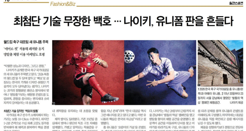 나이키가 공개한 한국 축구 국가대표팀의 새 유니폼이 주목받고 있다. ‘2026 북중미 월드컵’을 두 달여 앞두고 ‘백호’로 상징되는 한국의 기개와 디자인·최첨단 기술까지 모두 담아냈다는 평가다. 나이키는 과거의 정형화된 패션쇼 방식에서 벗어나 ‘방탈출’이라는 체험형 콘셉트를 도입하며, 경험을 중시하는 젠지세대 소비자까지 끌어들이는 데 성공했다.