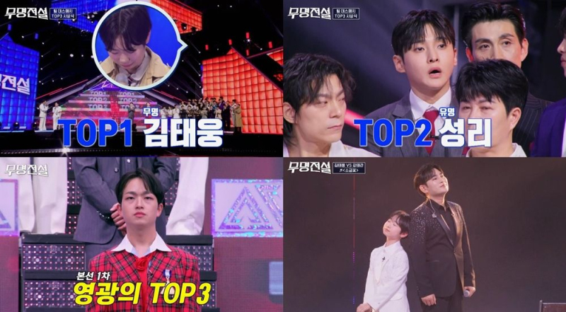 5위 김태웅과 강태관의 대결에서는 탑프로단의 몰표가 나와 모두를 깜짝 놀라게 했다. ‘소금꽃’을 선곡한 김태웅과 강태관은 첫 소절부터 탑프로단의 감탄을 이끈 두 사람은 같은 노래 속에서 순수함과 완숙함이라는 다른 감성을 표현하며 각기 다른 매력을 선사했다. 결과는 강태관이 국민 프로단에게 조금 더 높은 점수를 받았지만, 김태웅이 탑프로단의 몰표를 받으며 최종 725점 대 305점으로 팀 승리를 이끌었다. 김태웅은 “아빠를 안 본 지가 오래돼서 아빠가 어떻게 사는지 궁금한 마음으로 불렀다”라고 말해 감동을 더 했다. 사진=MBN 모든 무대가 끝난 후 탈락 후보 중 추가 합격자가 발표됐다. 유명 5위 팀 강태관, 이동준, 이루네, 무명 4위 팀 이대환, 유지우, 최우진, 유명 3위 팀 황윤성, 신성, 유명 2위 팀 라이언, 이우중, 장한별, 무명 1위 팀 이창민, 한가락, 마르코가 추가로 합격하며 다음 라운드로 진출하게 됐다. 본선 1차 최종 순위로는 1위 김태웅, 2위 성리, 3위 문은석이 차지, 무명 출신 도전자들이 톱3 중 두 자리를 차지하며 안방극장에 짜릿한 카타르시스를 선사했다.