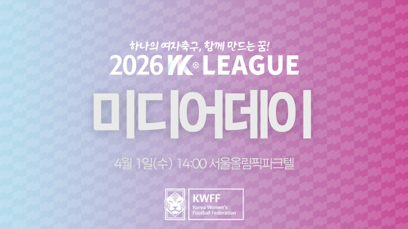 2026 WK리그 미디어데이가 오는 4월 1일 오후 2시 올림픽파크텔에서 열린다. 사진=한국여자축구연맹 한국여자축구연맹이 오는 4월 1일 오후 2시 서울 올림픽파크텔 4층 아테네홀에서 ‘하나의 여자축구, 함께 만드는 꿈! 2026 WK리그 미디어데이’를 개최한다고 이날 밝혔다.