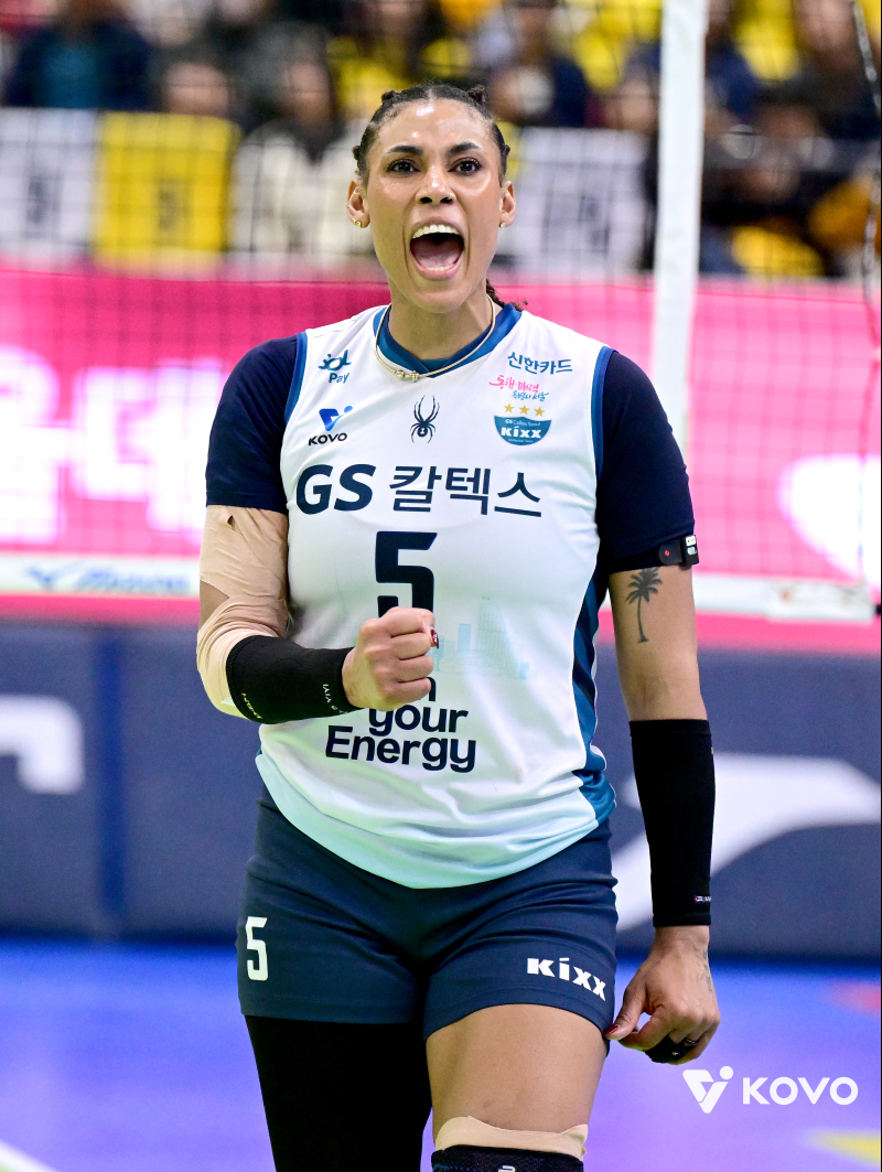 GS칼텍스 실바. 사진=KOVO GS칼텍스가 정규리그 2위 현대건설을 꺾고 챔피언 결정전 진출 확률 100% 확률을 거머쥐었다.