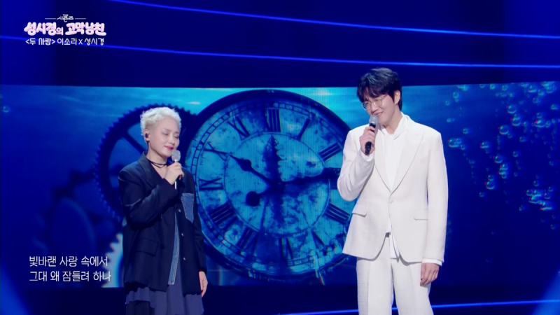 사진=KBS2 프로그램의 새 코너 ‘두 사람’의 첫 번째 주인공으로는 원조 ‘고막여친’ 이소라가 출연해 객석을 놀라게 했다. 이소라와 성시경은 ‘그대 안의 블루’를 듀엣 무대로 선사했고, 관객들은 열띤 호응을 보냈다. 약 6년 만에 같은 무대에 오른 이소라는 절친한 후배 성시경의 첫 진행을 응원하는 마음으로 출연을 결정했다고 밝혀 눈길을 모았다.