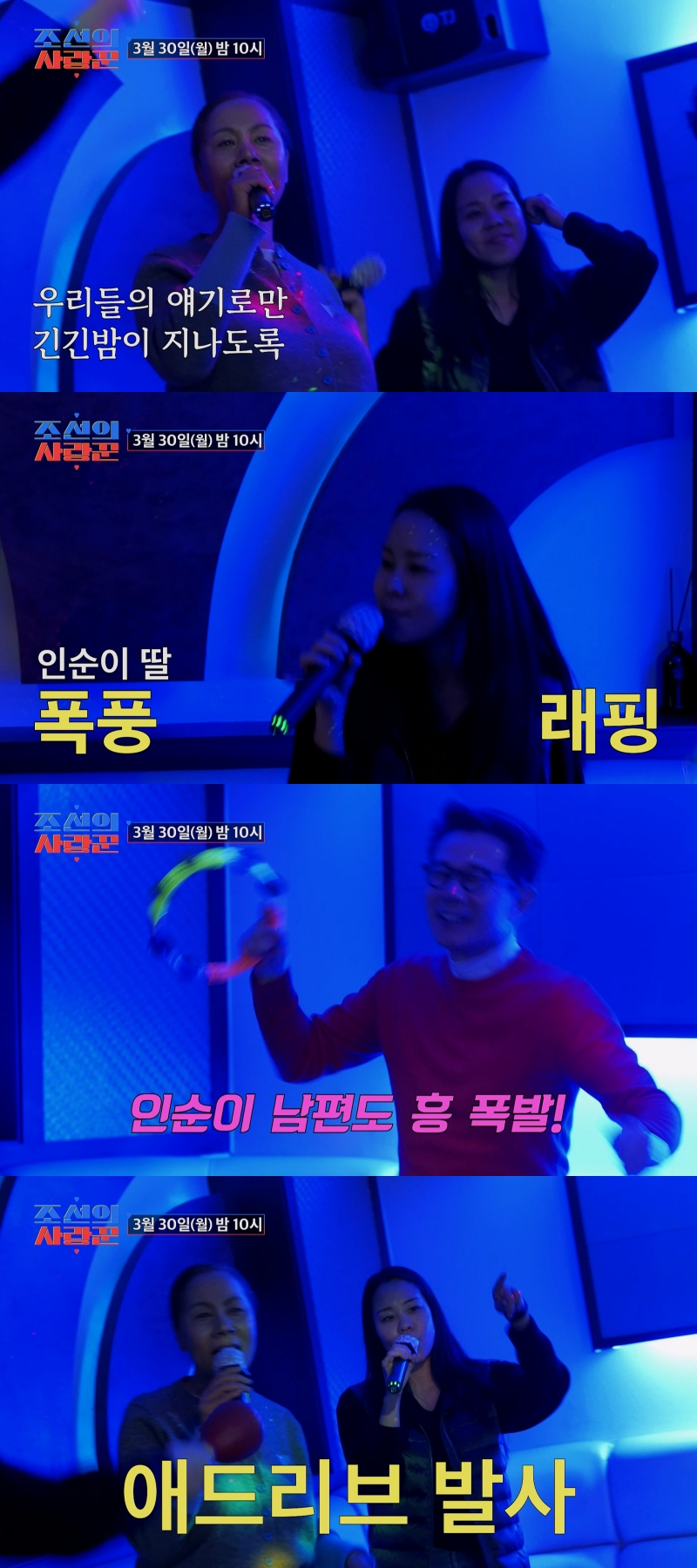 공개된 VCR 속 인순이는 파워풀한 성량과 독보적인 음색으로 음원 재현율 130%를 선보이며 노래방을 순식간에 콘서트장으로 탈바꿈시켰다. 여기에 엄마의 외모뿐만 아니라 음악적 재능도 닮은 인순이의 딸이 래퍼 못지않게 박자를 가지고 노는 놀라운 솜씨를 보였다. 이에 흥이 한껏 오른 인순이는 돌발 애드리브로 노래방의 열기를 뜨겁게 달궜다. 부인을 살뜰하게 내조했던 남편도 탬버린을 들고 분위기에 편승해 훈훈함을 자아냈다.