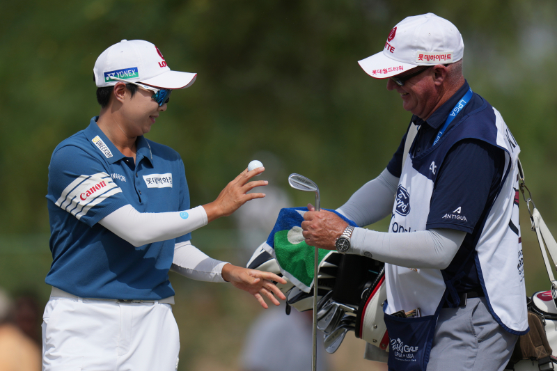김효주와 그의 캐디 트래비스 윌슨. AP=연합뉴스