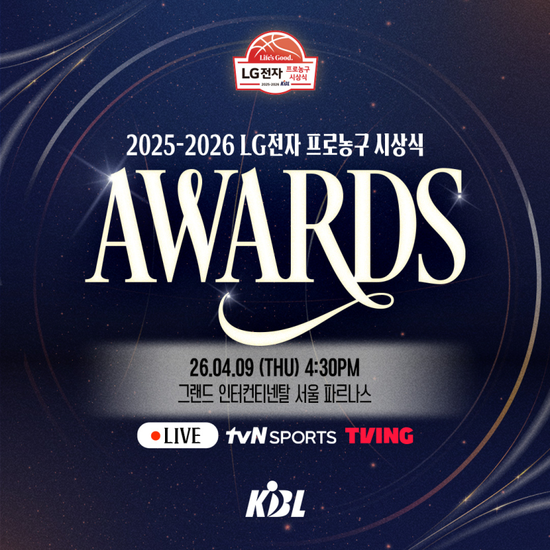 프로농구연맹(KBL)은 30일 "오는 4월 9일 오후 4시 30분 그랜드 인터컨티넨탈 서울 파르나스 그랜드 볼룸에서 ‘2025~26 LG전자 프로농구 시상식’을 개최한다"라고 전했다.