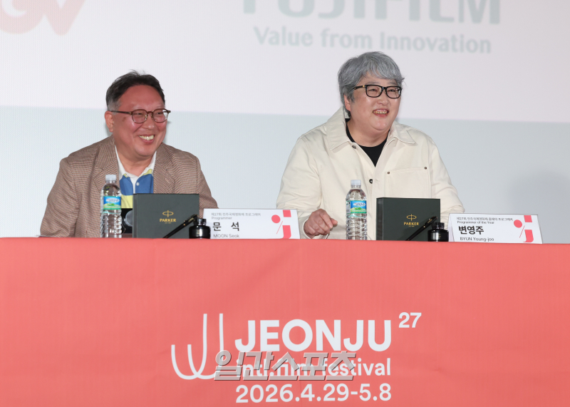 [포토] 제27회 전주국제영제 가자회견 참석한 문석과 변영주 프로그래머