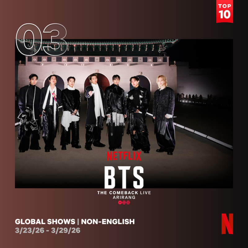 이에 앞서 베일을 벗은 ‘BTS 컴백 라이브: 아리랑’(BTS THE COMEBACK LIVE|ARIRANG)은 같은 기간 360만 시청수를 기록하며 글로벌 톱10 TV쇼(비영어) 부문 3위에 올랐다.