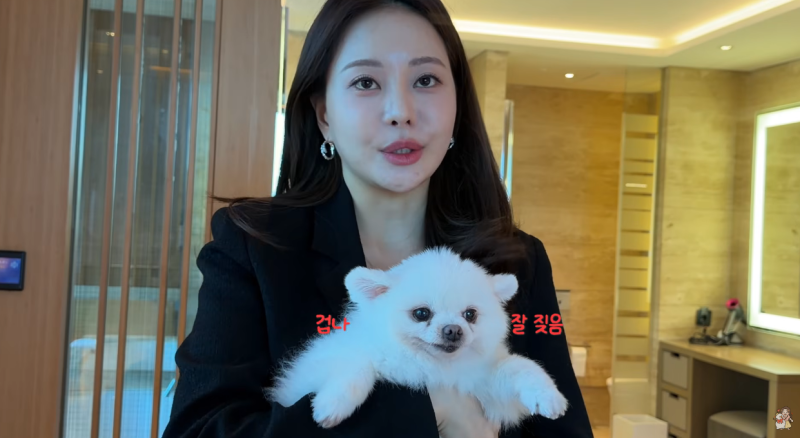 유튜버 아옳이가 반려견 엘사와 호캉스를 즐겨 눈길을 끌었다.