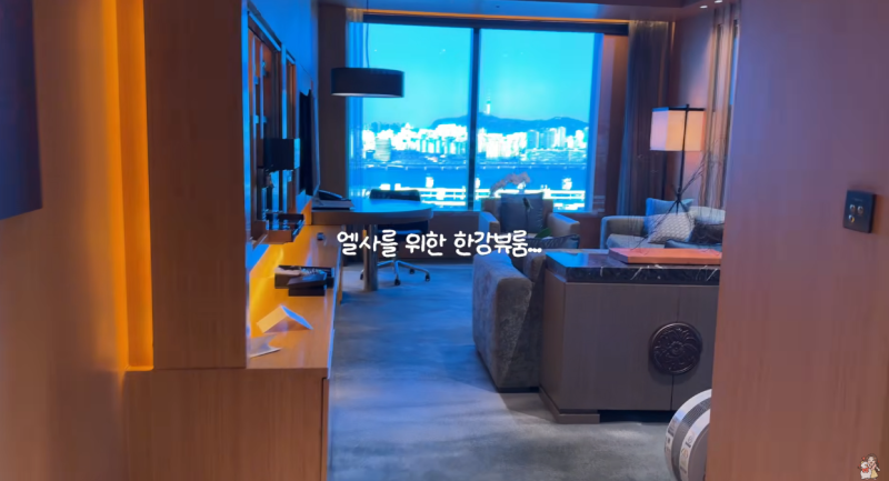 아옳이는 “엘사를 위해 굉장히 좋은 방으로 예약했다”며 한강이 한눈에 내려다보이는 리버뷰 스위트룸을 소개했다.