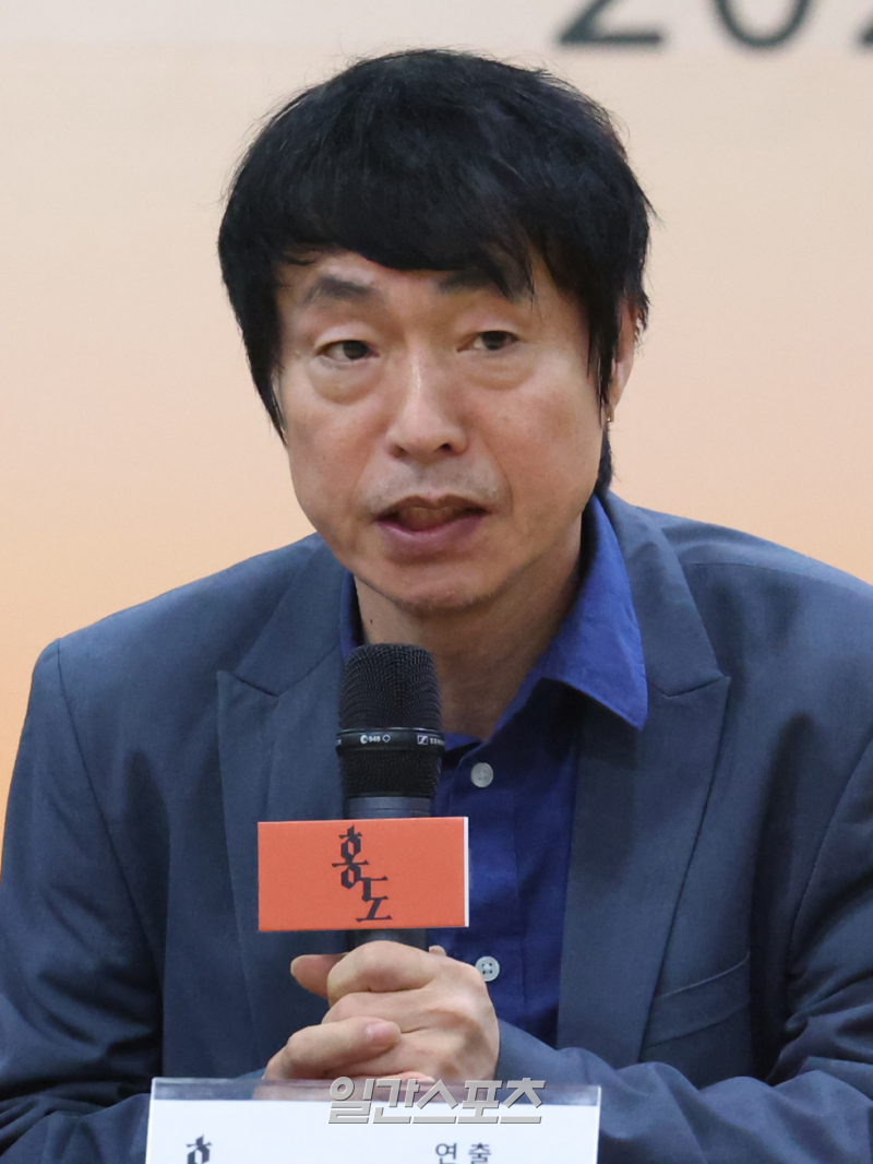 고성웅 연출이 1일 오후 서울 성신여대 미아운정그린캠퍼스 마루연습실에서 열린 연극 '홍도' 제작발표회에 참석해 인사말을 하고 있다.