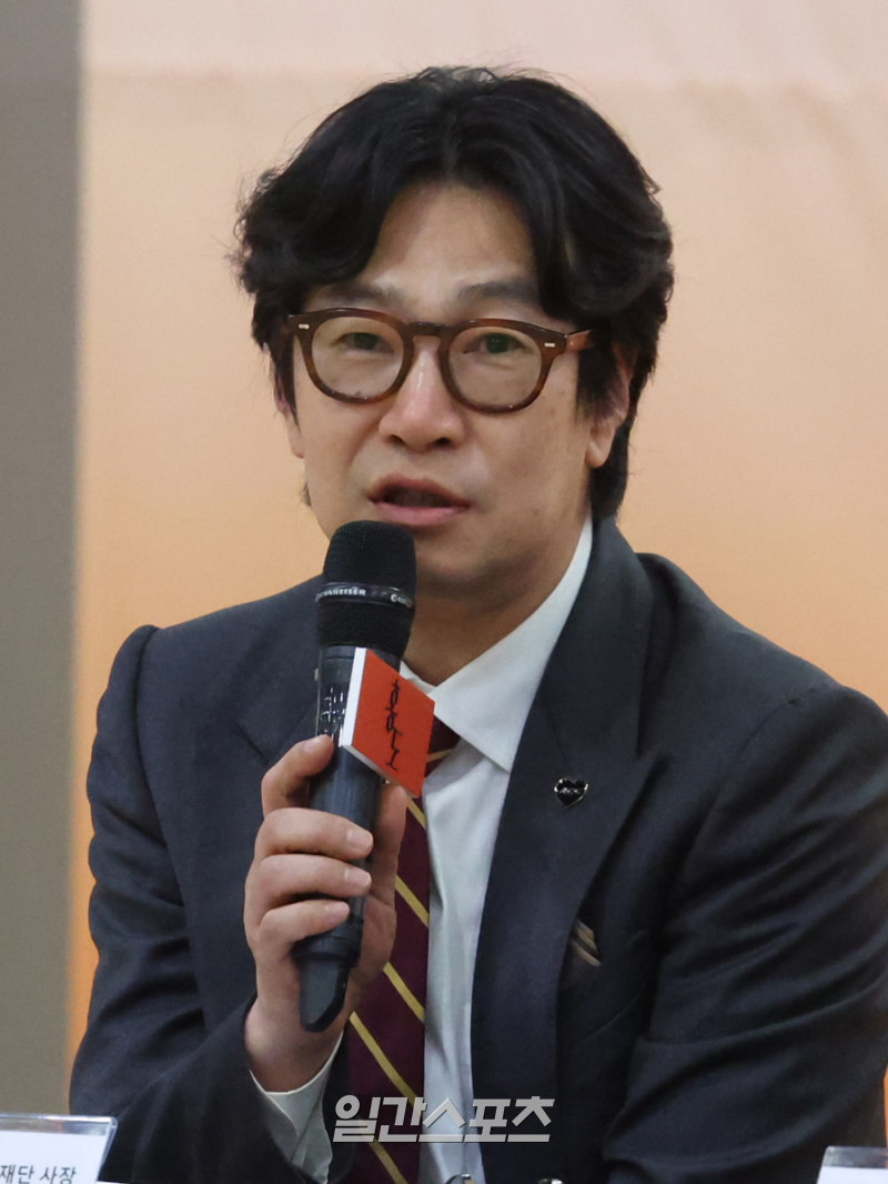 국립아시아문화전당재단 김명규 사장이 1일 오후 서울 성신여대 미아운정그린캠퍼스 마루연습실에서 열린 연극 '홍도' 제작발표회에 참석해 인사말을 하고 있다.