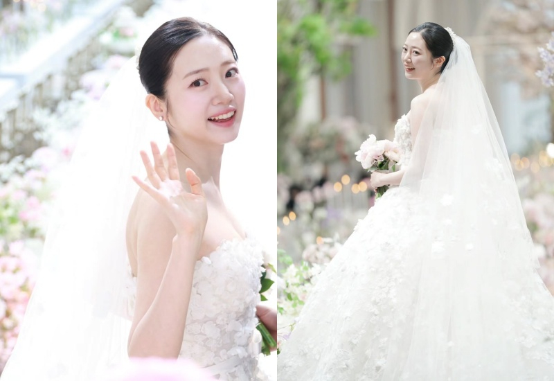 사진 속 한보배는 순백의 웨딩드레스를 입고 카메라를 향해 포즈를 취하고 있다. 특히 신부의 환한 미소가 시선을 사로잡는다.