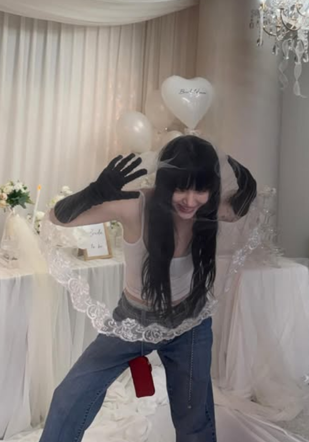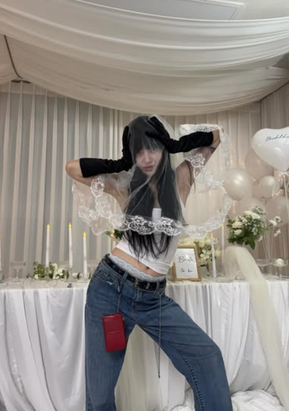공개된 사진 속 지민은 풍성한 레이스가 돋보이는 면사포를 쓰고 화려한 꽃장식으로 가득 찬 화이트톤의 파티장에서 포즈를 취하고 있다. 비록 장난으로 꾸며진 상황이었지만, 지민 특유의 '힙한' 감성이 고스란히 묻어나는 웨딩 패션이 눈길을 끌었다.