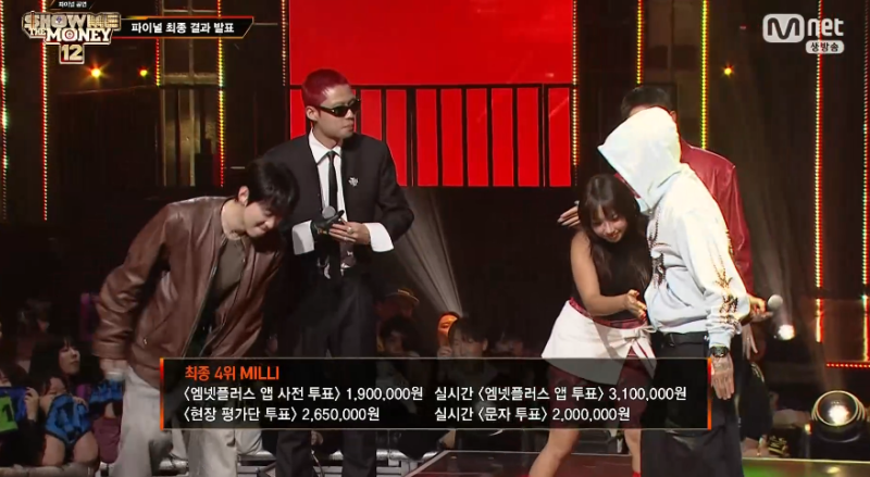 이날 공개된 전세계 시청자가 선택한 사전 투표 결과도 1위는 밀리였다. 2위가 김하온, 3위 나우아임영, 4위 메이슨홈, 5위 트레이비 순이었다.