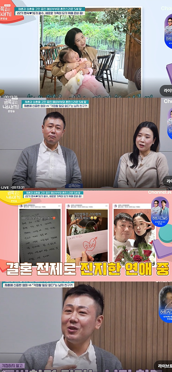 3일 방송된 채널A ‘요즘 육아 금쪽같은 내 새끼’(이하 ‘금쪽같은’)에는 ENA·SBS플러스 ‘나는 솔로’ 22기 현숙과 16기 광수가 출연했다. 두 사람은 현재 결혼을 전제로 교제 중인 가운데, 현실적인 고민을 솔직하게 꺼내 눈길을 끌었다.