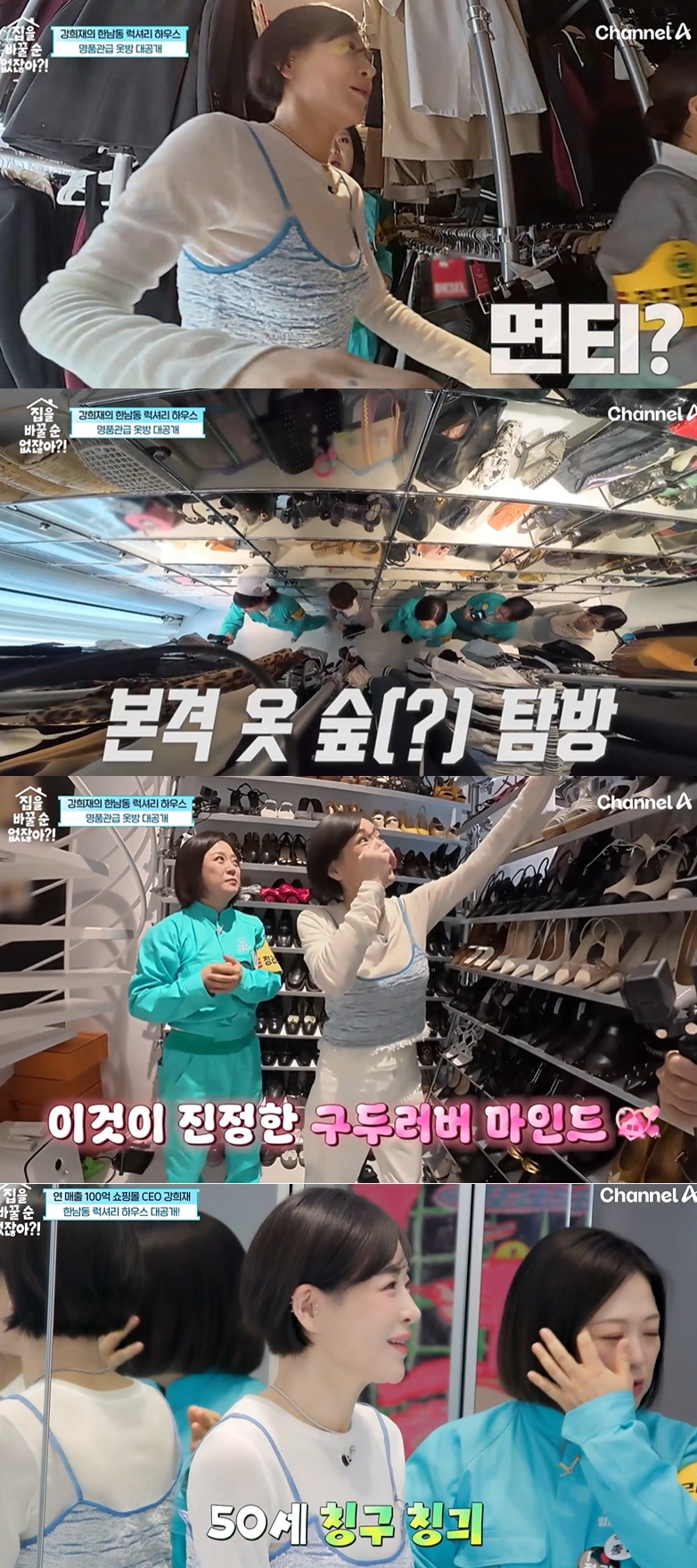 무엇보다 눈길을 끈 건 2층 규모의 드레스룸이었다. 별도의 잠금장치가 설치된 공간 안에는 의류와 명품 가방, 구두 등이 빼곡하게 정리돼 있었고, 패널들은 “백화점 같다”며 놀라움을 감추지 못했다. 특히 브랜드와 색상별로 정리된 구두와 가방, 매장처럼 진열된 의류는 압도적인 규모를 자랑했다.