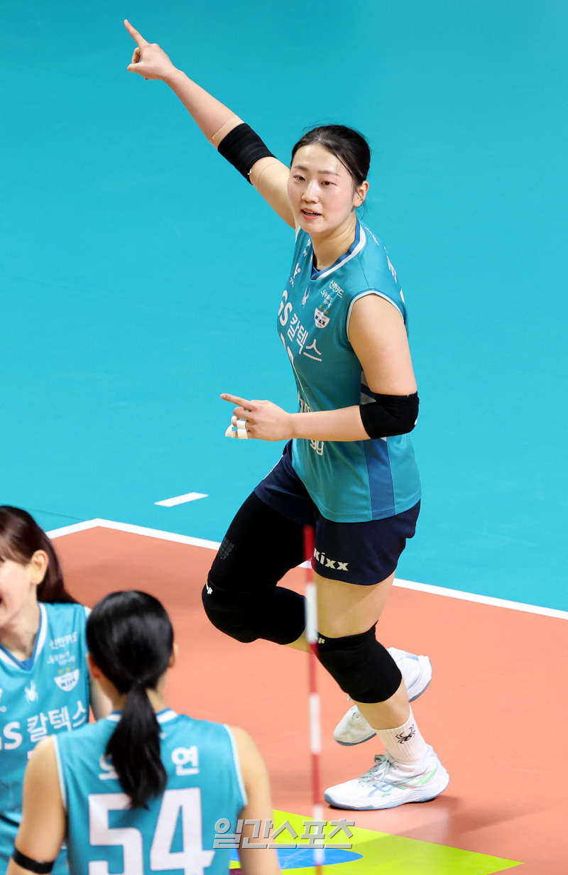 [포토]권민지, 블로킹 득점 환호