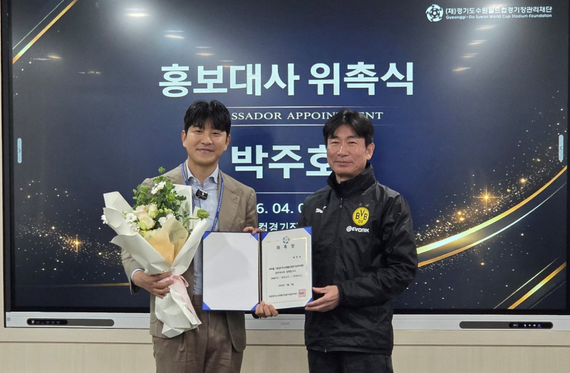 사진=도르트문트 아카데미 코리아 박주호 대표는 “수원월드컵경기장의 홍보대사로 위촉되어 매우 뜻깊게 생각한다”며, “도르트문트에서의 경험을 바탕으로 국내 유소년 선수들이 더 좋은 환경에서 성장할 수 있도록 노력하겠다. 앞으로 다양한 활동을 통해 축구를 통한 긍정적인 변화에 기여하고 싶다”고 소감을 밝혔다.