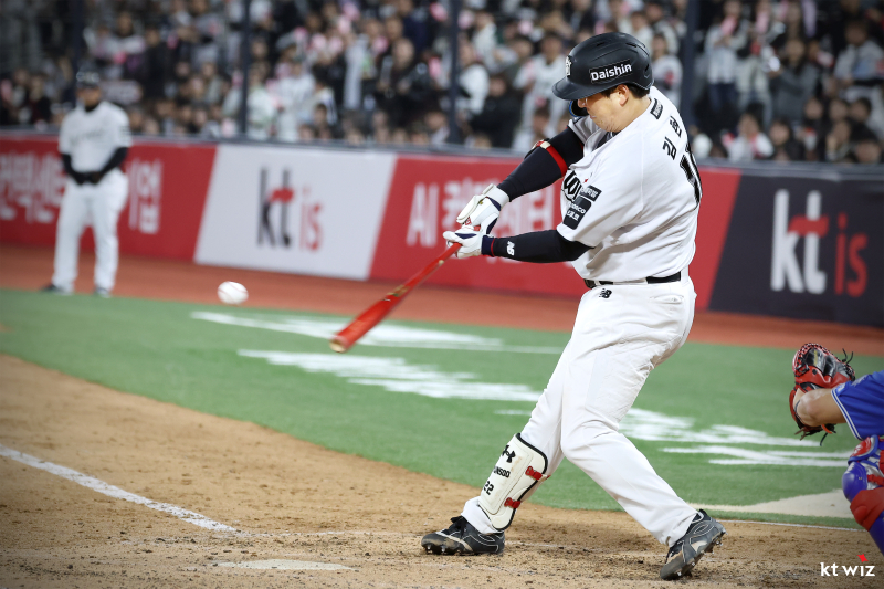 KT는 3회 말 1사 후 최원준의 볼넷과 김현수의 안타, 안현민의 볼넷으로 만루를 만들었다. 이후 힐리어드의 좌익수 희생플라이로 1점을 더 달아났다.